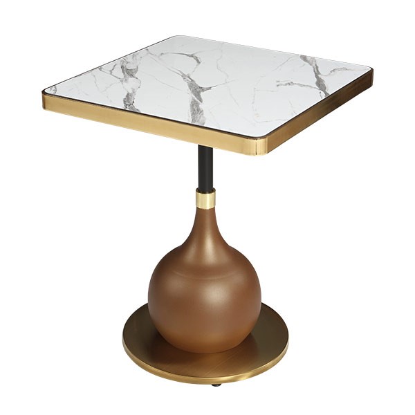 Altın Çerçeveli Beyaz Mermer Kare Masa