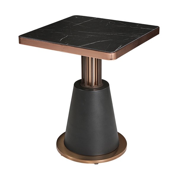 Bakır Çerçeveli Siyah Mermer Kare Masa