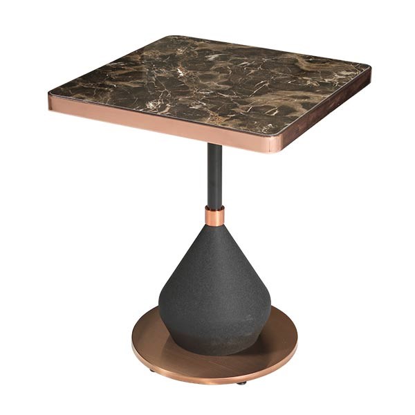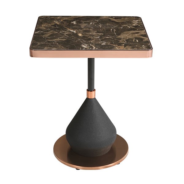 Bronz Çerçeveli Siyah Mermer Kare Masa