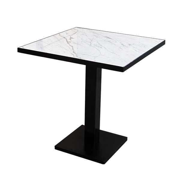 Çerçeveli Mermer Kare Masa, beyaz mermer görünümlü tablası ve siyah çerçeveli tasarımıyla şık bir duruş sergiler. Siyah metal ayağı sayesinde sağlam ve uzun ömürlüdür. Restoran, cafe ve otel projelerinde sıkça tercih edilen bu model, özel ölçü ve mermer desen alternatifleriyle her mekâna uyum sağlar.