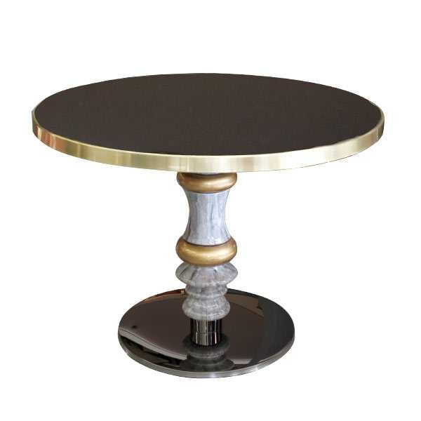 Dekoratif ayaklı siyah yuvarlak masa – gold çerçeveli tablası ve mermer görünümlü dekoratif ayağı ile mekanlara zarif bir görünüm kazandırır. Sağlam gövde yapısı ve şık tasarımıyla restoran, cafe ve otel projelerinde uzun ömürlü kullanım sunar. Proje bazlı özel ölçü ve renk seçenekleri ile üretilir.
