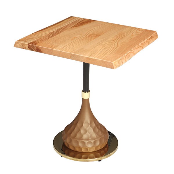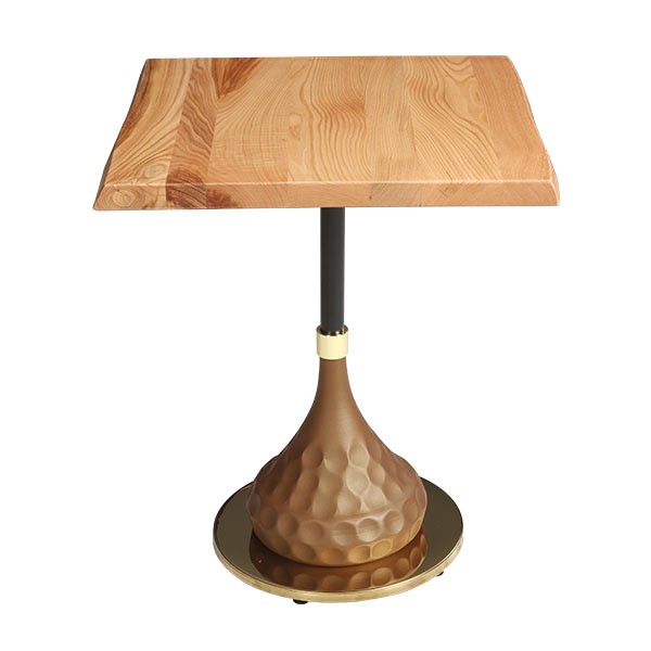 Çekiç Desenli Bronz Ayaklı Kare Masif Masa, doğal masif ahşap kare tabla ve çekiç desenli bronz ayak ile şık bir görünüm sunar. Altın detaylı yuvarlak kaidesi sayesinde mekâna premium bir hava katar. Kare restoran masa modelleri içinde öne çıkan bu masa, hem klasik hem de modern dekorasyonlarda kullanılabilir. Tek ayaklı yapısı sayesinde oturma düzeni kolayca planlanabilir. Dayanıklı malzeme yapısı ve kolay temizlenebilir yüzeyi ile uzun ömürlü kullanım sağlar. Cafe masa düzenlemeleri, restoran projeleri ve otel alanları için ideal bir seçimdir.