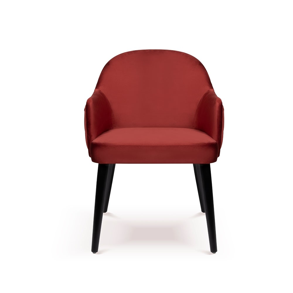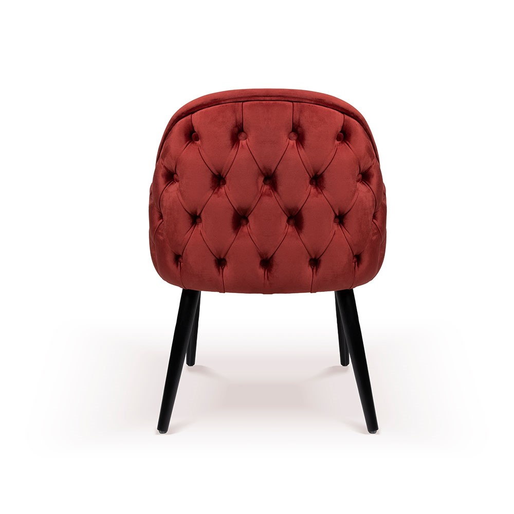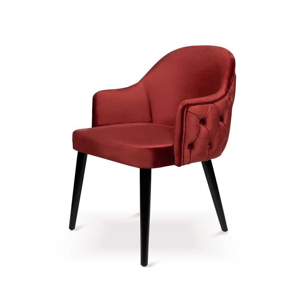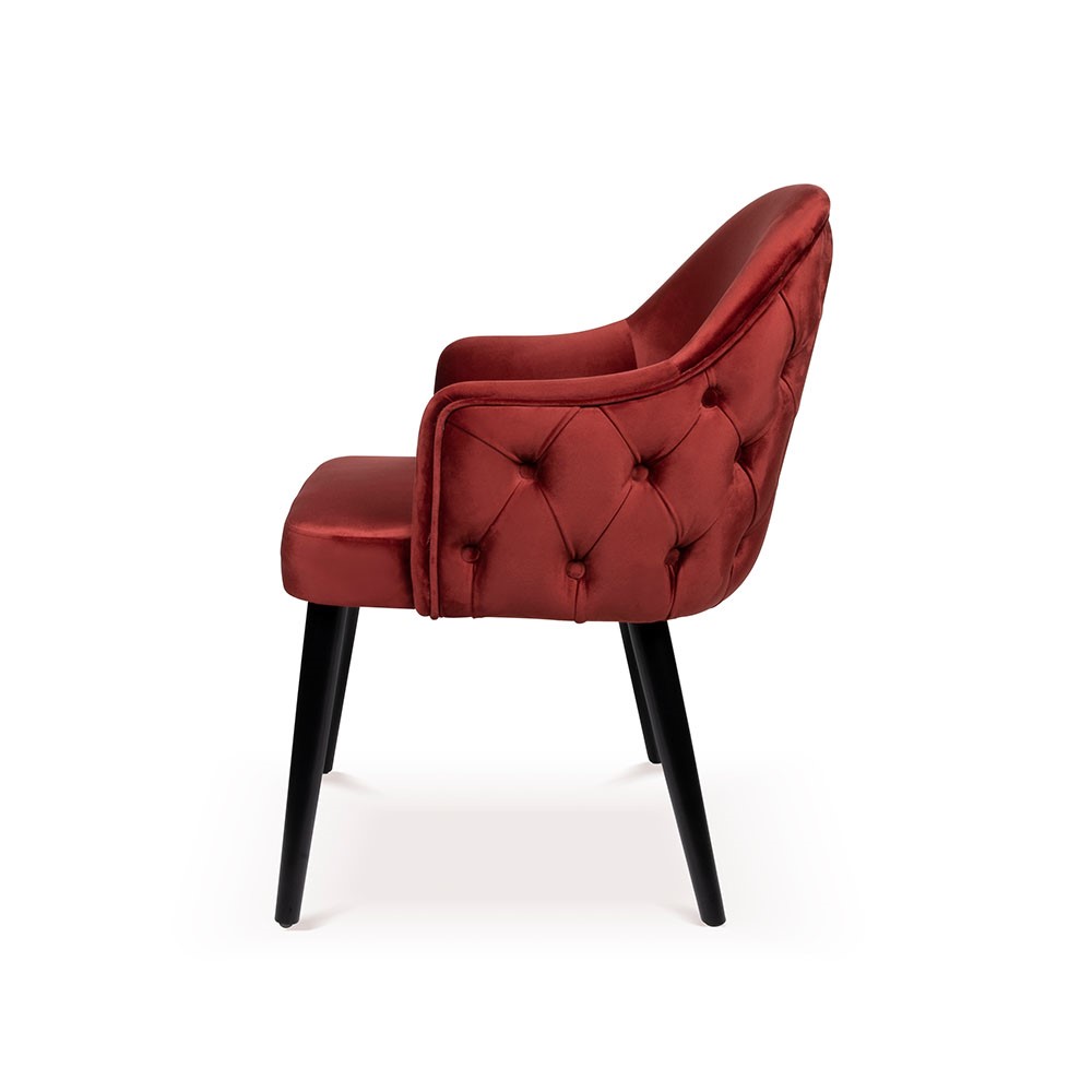 Siyah masif ayaklar, bordo döşeme ile güçlü bir kontrast oluşturur.