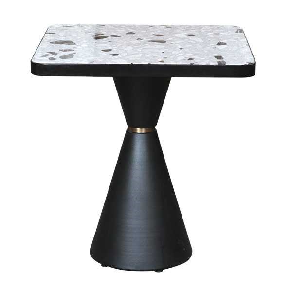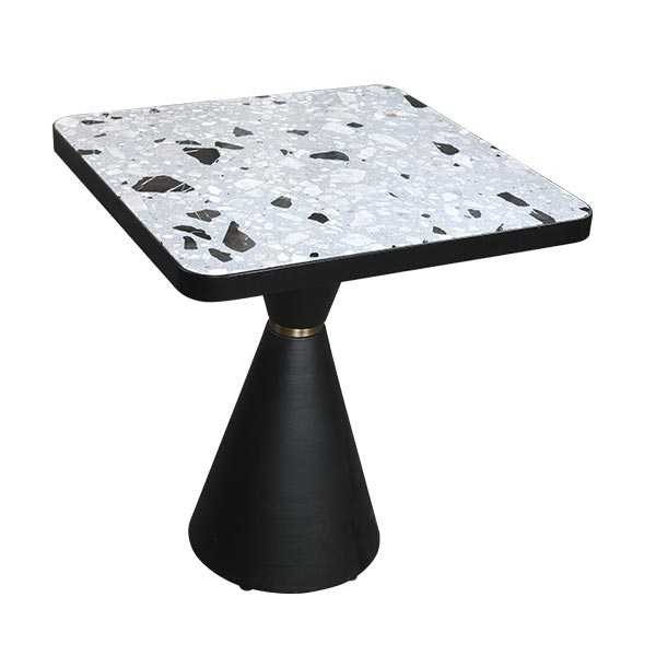 Kora Restaurant Masası, terrazzo desenli kare tablası ve konik siyah ayağıyla modern mekanlar için ideal bir seçimdir. Sağlam yapısı ve estetik görünümü sayesinde restoran, cafe ve otel projelerinde uzun ömürlü kullanım sunar. Projeye özel ölçü seçenekleri ile her dekorasyona uyum sağlayarak mekanın havasını tamamlar.