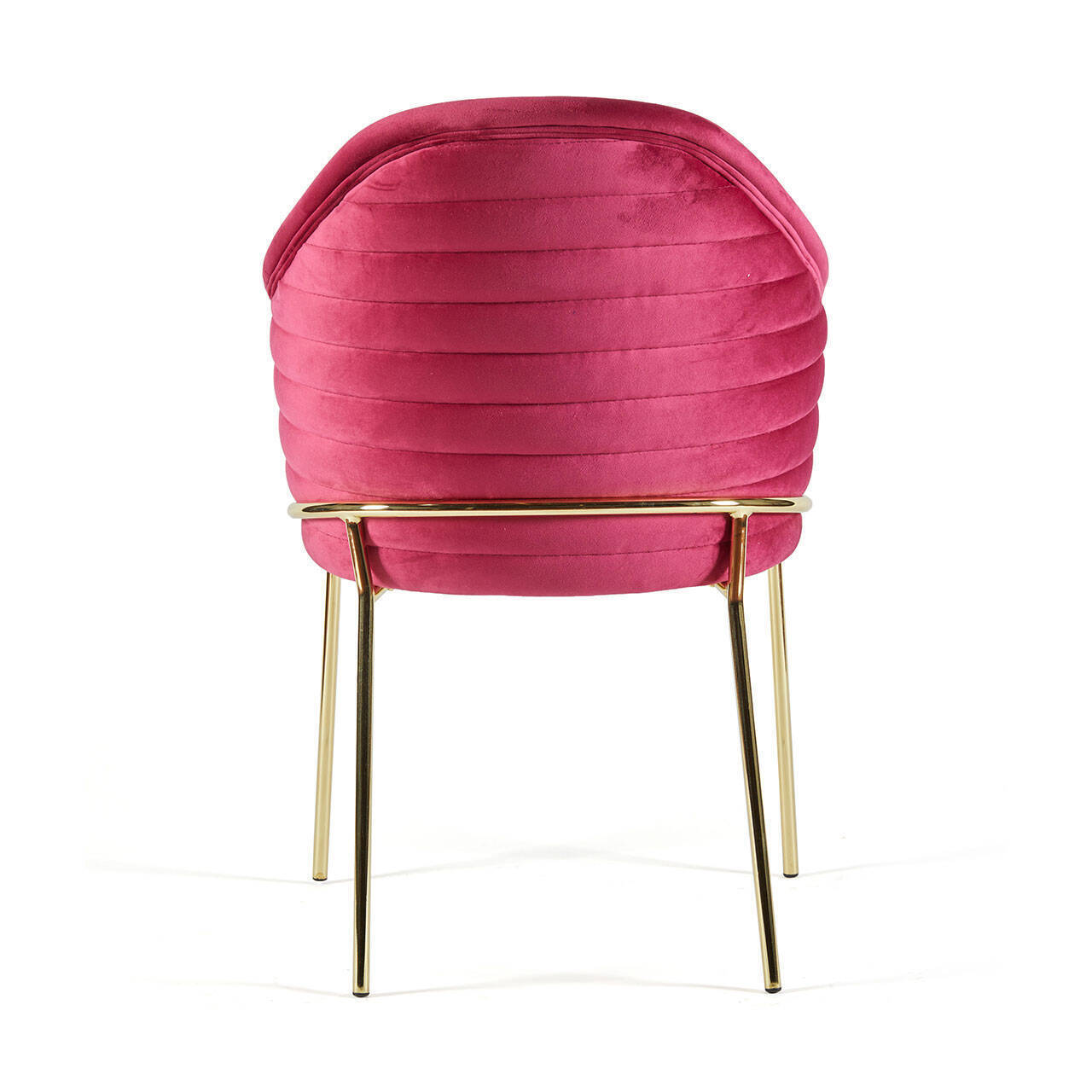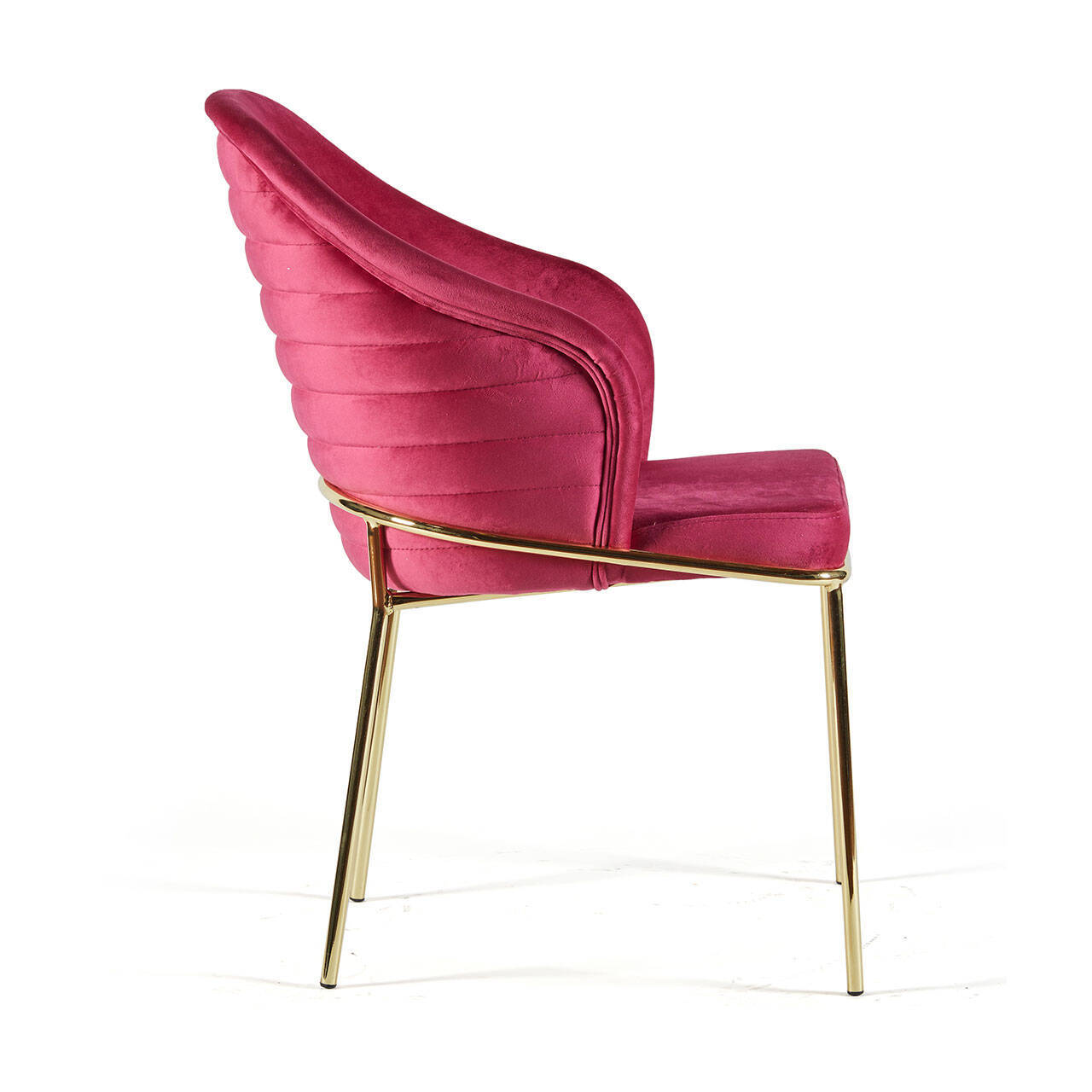 Lina Restoran Sandalyesi, canlı fuşya kadife döşemesi ve altın kaplama ince metal ayak tasarımıyla mekânlara sofistike bir zarafet kazandırır. Rezara’nın özgün üretim çizgisini yansıtan bu model, restoran, cafe ve otel gibi prestijli mekanlarda göz alıcı bir etki yaratmak için tasarlanmıştır.
