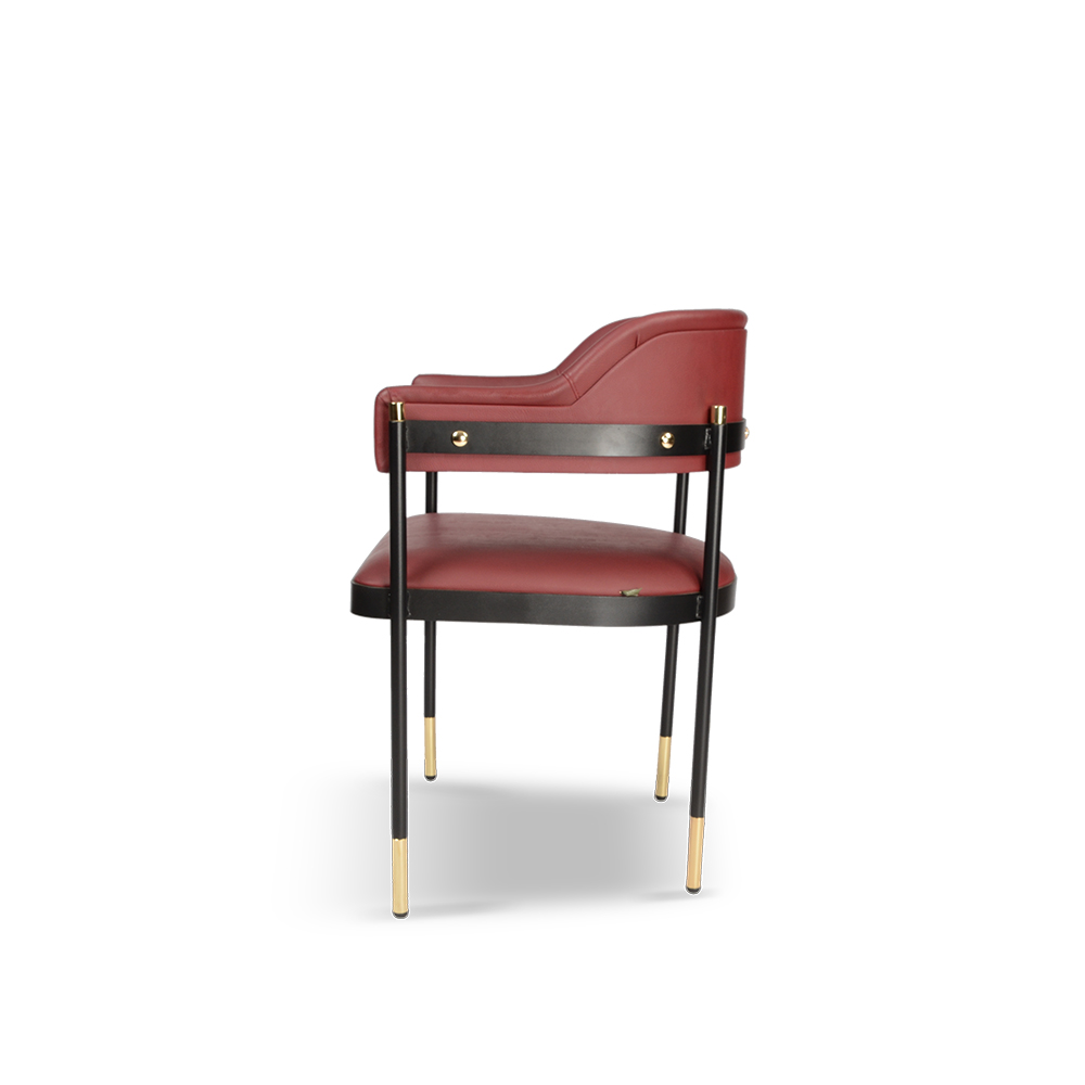 Liora Deri Kaplama Restoran Sandalyesi, zarif formu ve ince metal detaylarıyla modern restoran ve kafe konseptlerinin gözdesi olmaya aday. Bordo tonlarındaki suni deri döşemesi, hem klasik hem de lüks bir atmosfer yaratırken, siyah metal iskeleti ve gold kaplama ayak uçları ürüne güçlü bir kontrast kazandırır.
