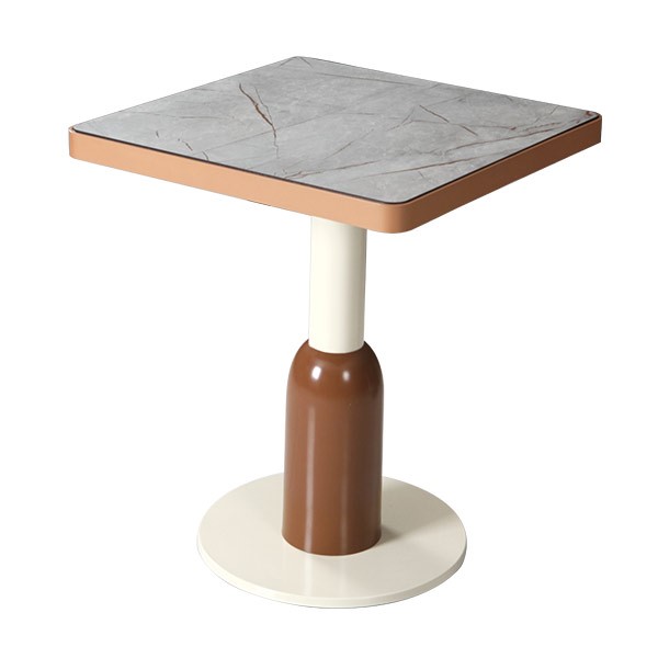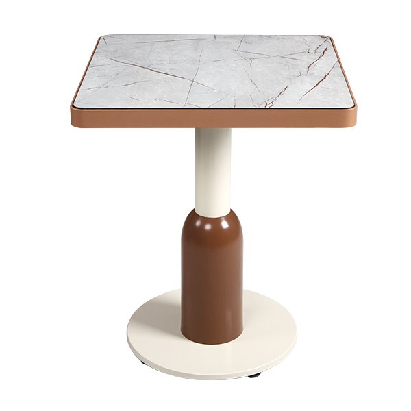 Mermer Desenli Kare Tek Ayaklı Masa, modern ve zarif tasarımıyla öne çıkan bir modeldir. Kare formda mermer desenli tablası ve iki tonlu metal gövdesi ile hem restoran masa modelleri hem de cafe masa düzenlemeleri için idealdir. Tek ayaklı yapısı sayesinde sandalyelerle rahat kullanım imkânı sunar. Dayanıklı malzeme yapısı ve kolay temizlenebilir yüzeyi ile yoğun kullanıma uygundur. Mermer görünümlü masa tasarımları ile mekanlara modern bir atmosfer kazandırır.