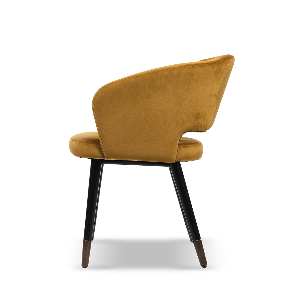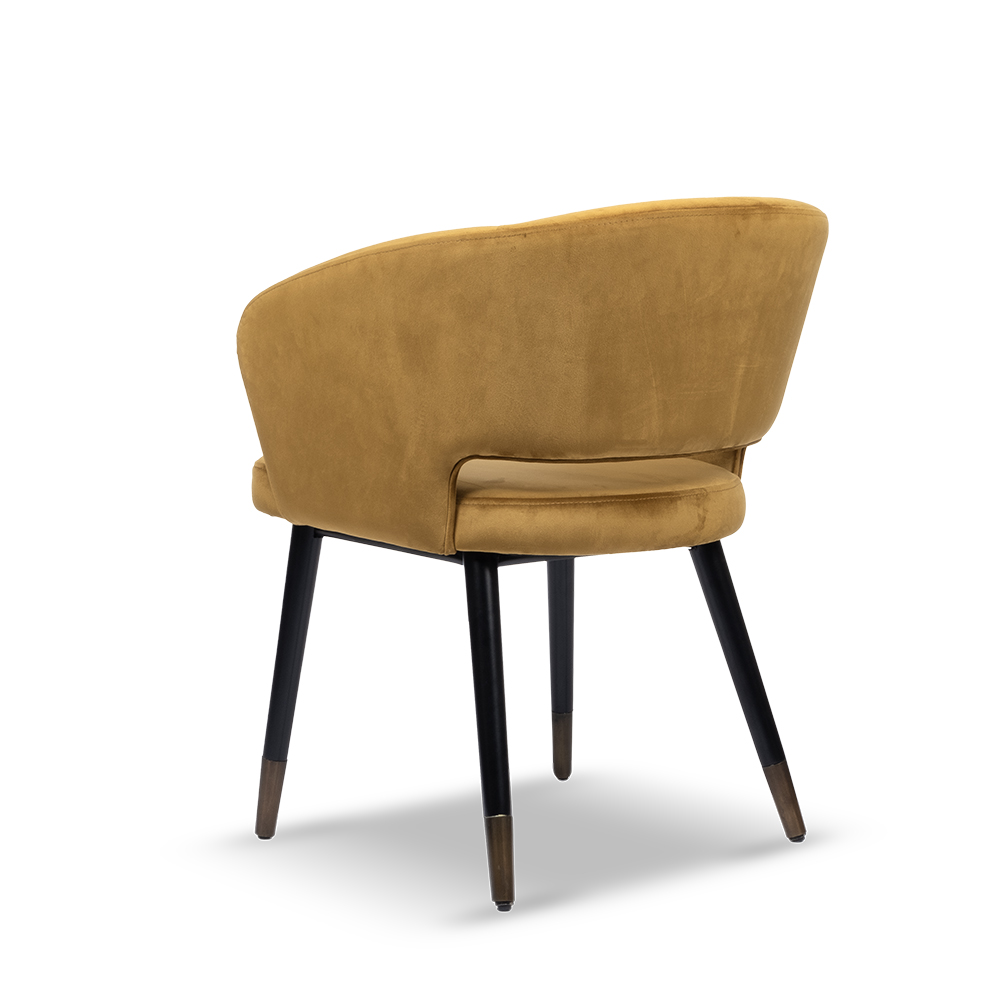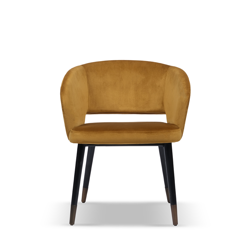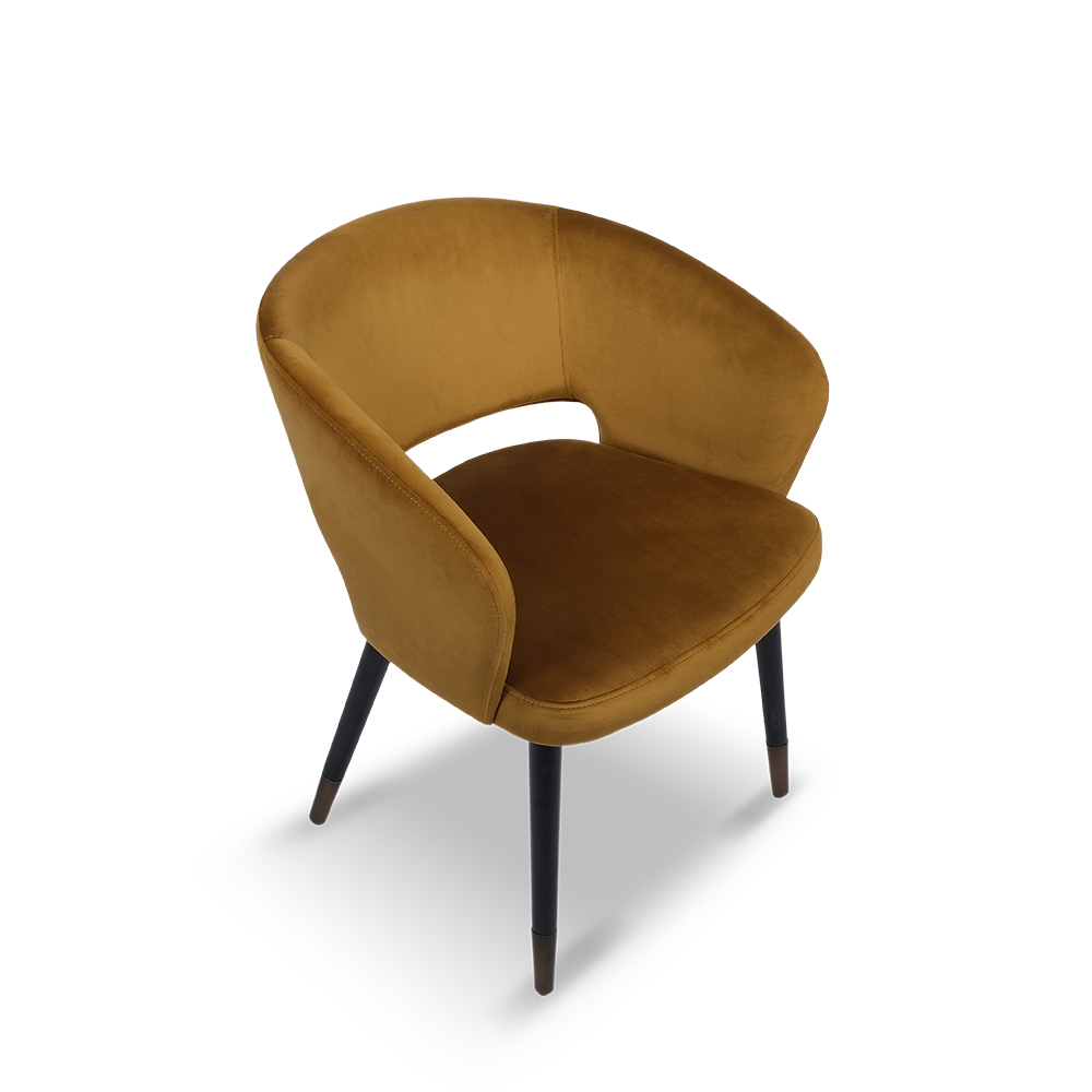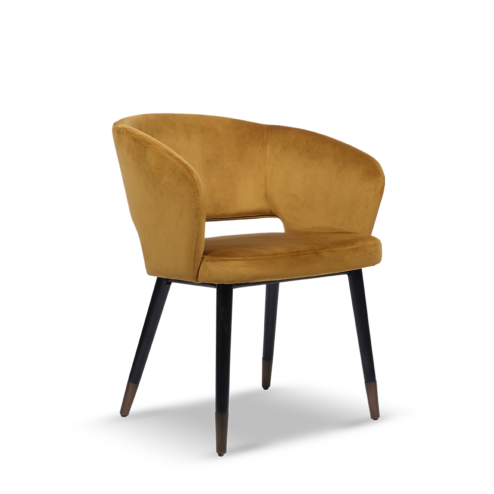Mira restoran sandalyesi, çağdaş çizgileriyle her mekâna sıcak ve zarif bir atmosfer kazandırır. Yarım oval sırt formu, oturumu saran yapısıyla konforu ön planda tutarken, kadife döşemesi ve ahşap ayaklarıyla modern bir denge sunar.