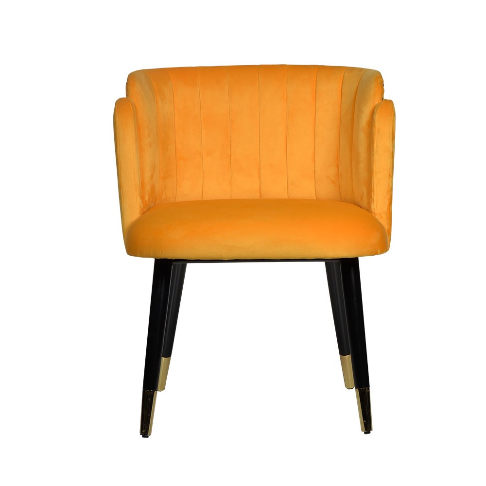 Siyah lake ayak yapısı ve pirinç uç detayları, sandalyeye lüks bir dokunuş kazandırırken, altın tonuyla uyumlu kumaş seçenekleriyle özel projelere entegre edilebilir. İster otel lobilerinde, ister restoran yemek alanlarında ya da cafe oturma bölümlerinde kullanılsın, her ortamda zarif bir atmosfer yaratır.