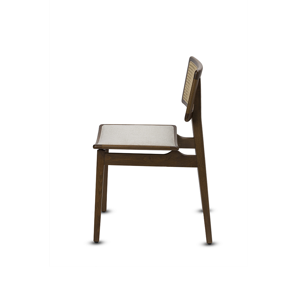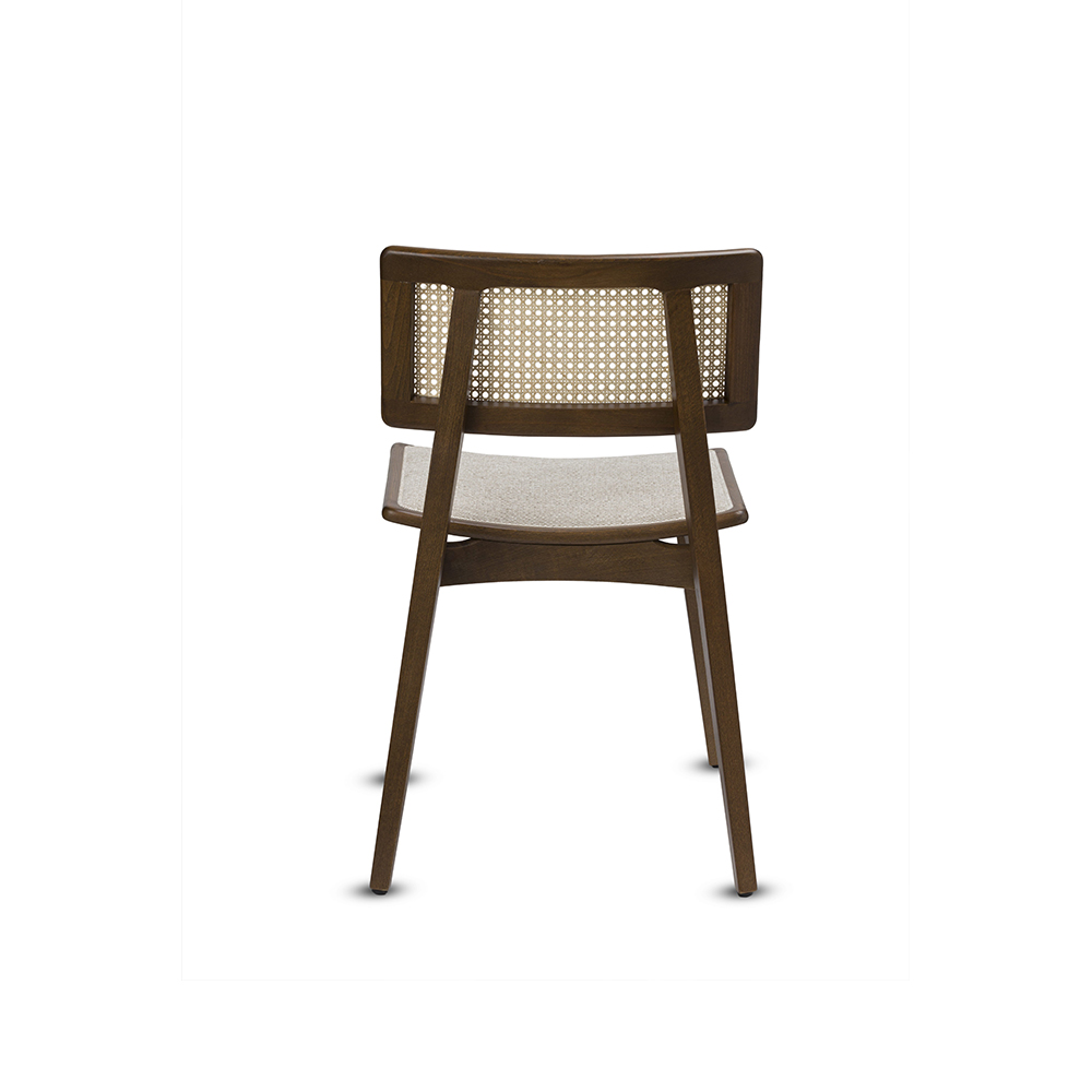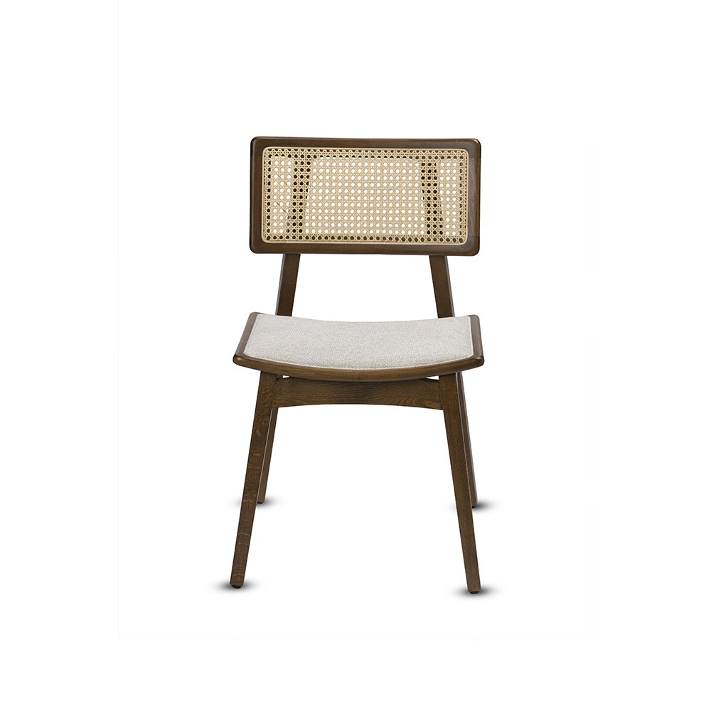 Narin restoran sandalyesi, zarif formu ve doğal malzeme uyumuyla mekanlara sıcaklık ve karakter kazandırır. Arka kısmında kullanılan hazeran örgü sırt detayı, klasik esintileri modern çizgilerle buluştururken, oturum kısmındaki yumuşak döşemesi uzun süreli konfor sağlar.