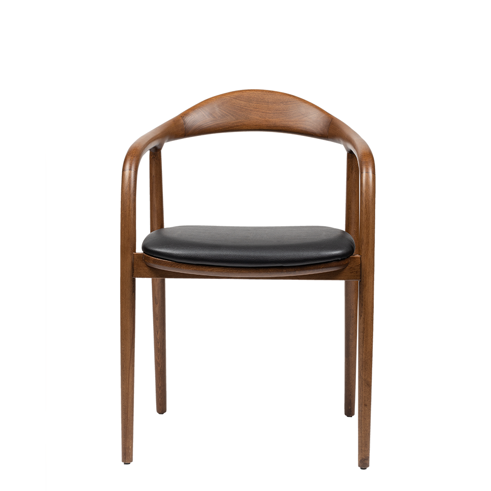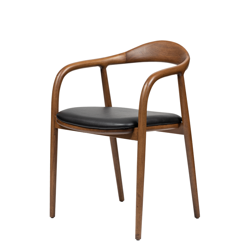 Petrus İç Mekan Sandalyesi, sade çizgileri ve doğal ahşap dokusuyla zamansız bir tasarım anlayışını temsil eder. Kavisli sırt formu, oturumda ergonomik bir destek sunarken; kompakt yapısı sayesinde hem dar hem geniş mekânlarda rahatlıkla kullanılabilir. Siyah deri oturumu ve ceviz tonlu masif iskeletiyle, iç mekânlara sıcaklık ve profesyonel bir duruş kazandırır.