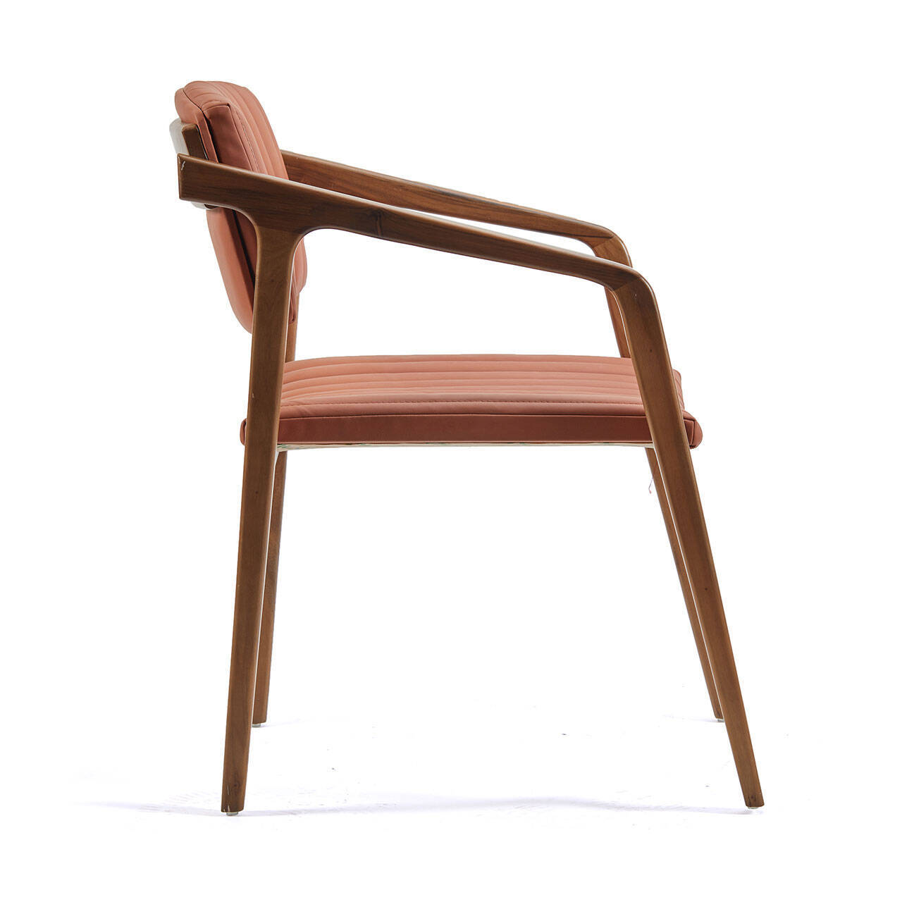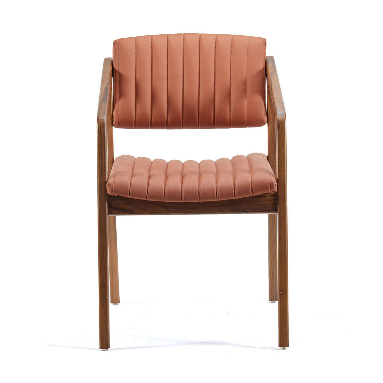 Restoran sandalye modelleri arasında kolçaklı formu ve zarif hatlarıyla fark yaratan Ravel, sıcak tonlu ceviz iskeletiyle birlikte mekâna doğal bir denge kazandırır. İsteğe göre kumaş veya deri döşeme seçenekleriyle, proje konseptine özel kişiselleştirme yapılabilir.