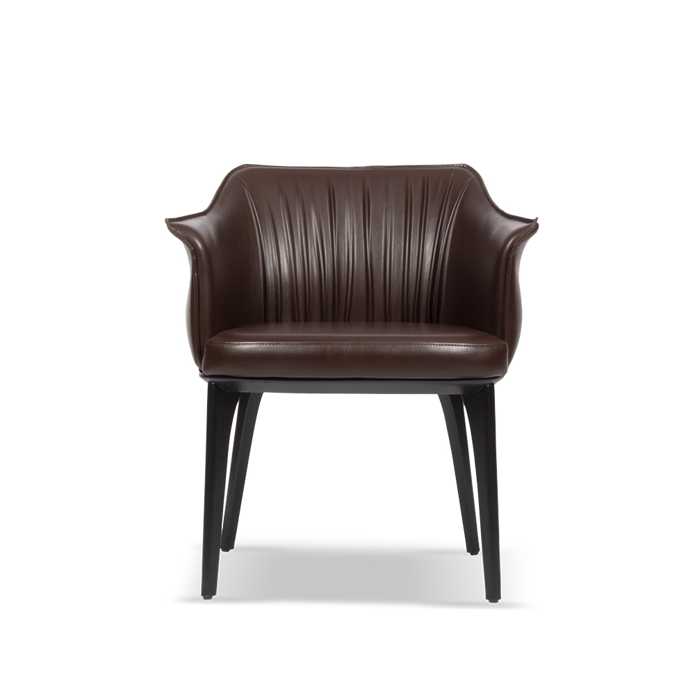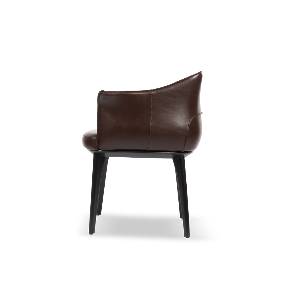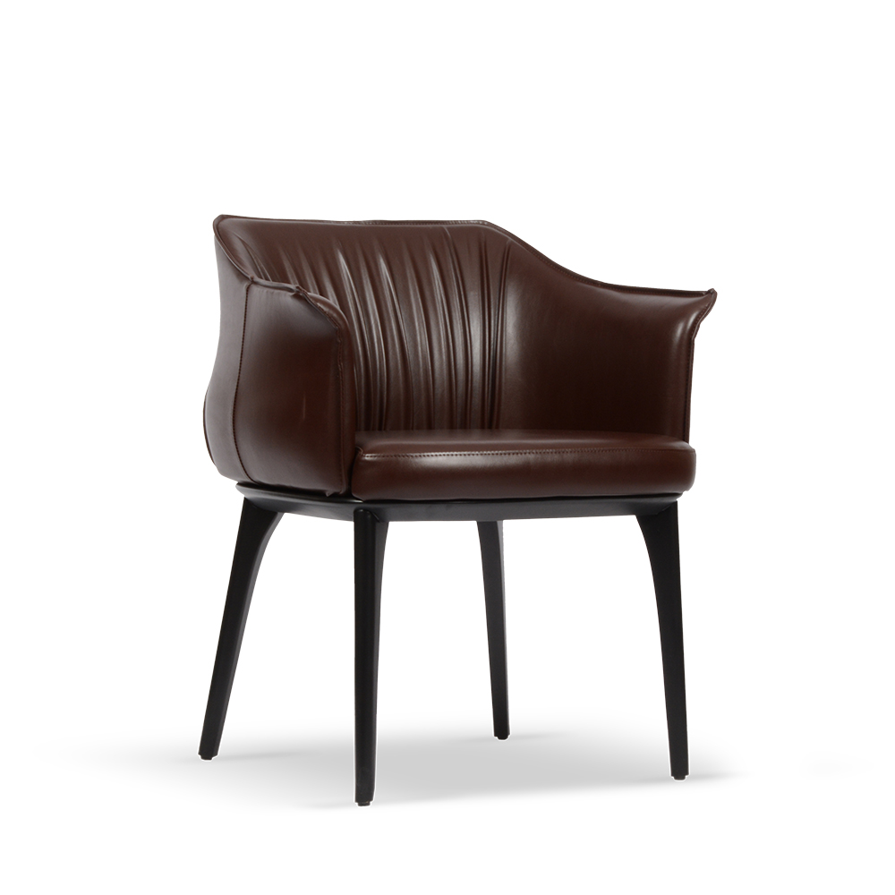Ravena restoran sandalyesi, zarif hatları ve lüks deri kaplamasıyla restoran, otel ve kafe projelerinde konforu estetikle buluşturur. Kavisli sırt yapısı ve içe doğru kıvrımlı kol detayları sayesinde misafirlere rahat bir oturum alanı sunar. Restoran sandalye modelleri arasında öne çıkan bu tasarım, hem ergonomik yapısı hem de kaliteli malzeme işçiliğiyle uzun yıllar dayanıklılık sağlar.
