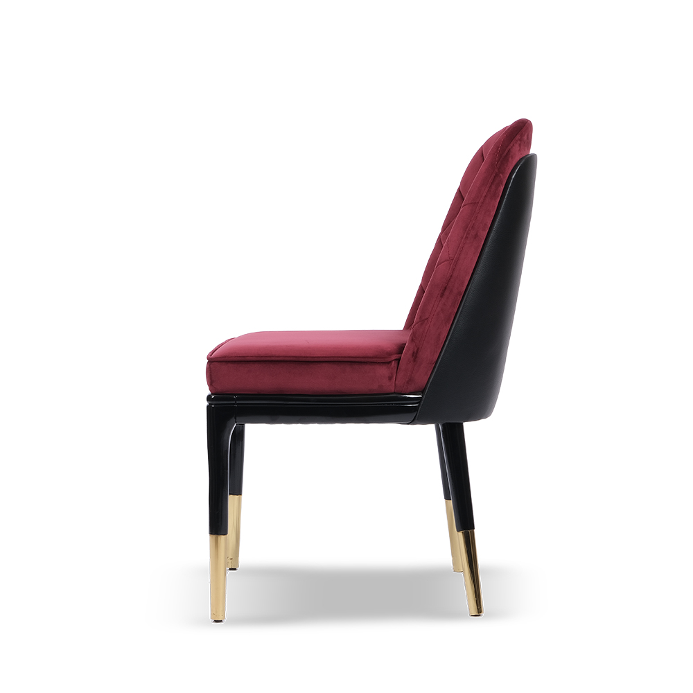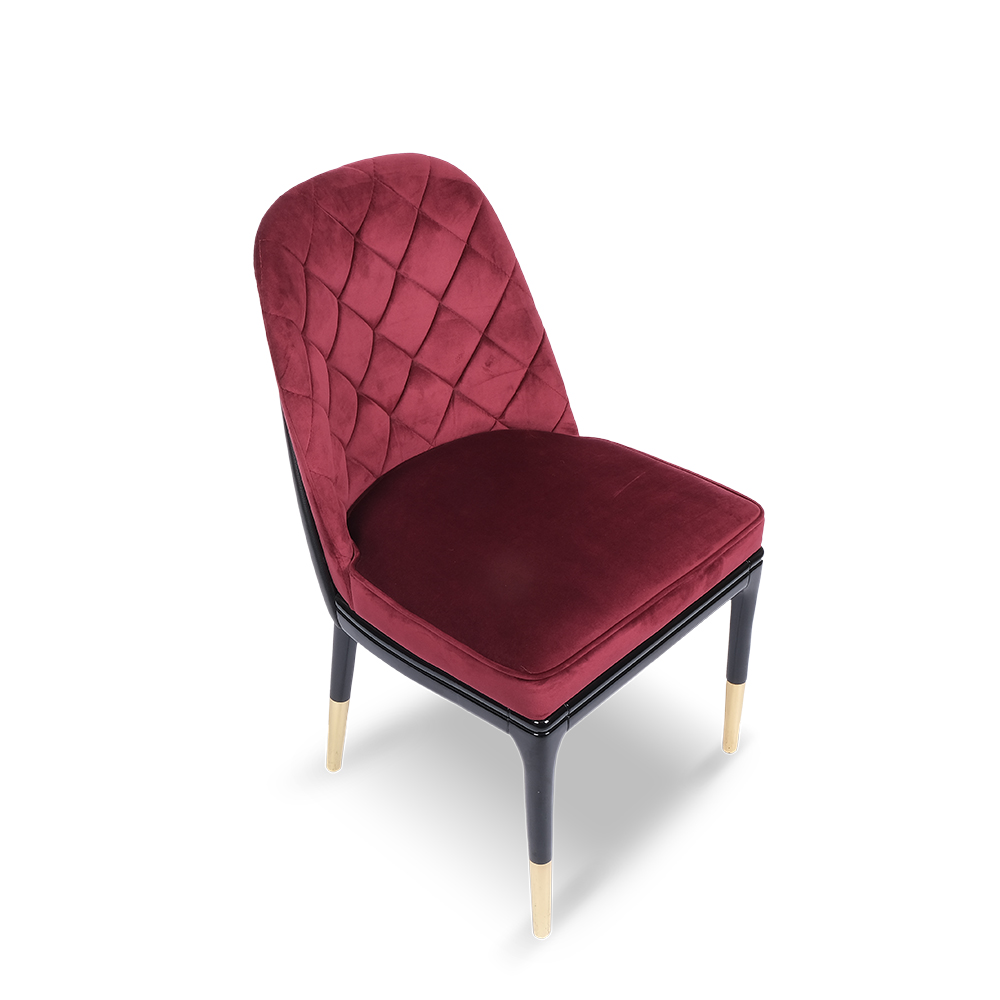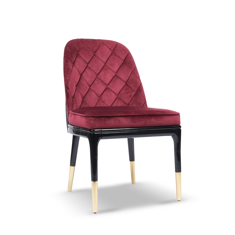 Rita restoran sandalyesi, zarafet ve konforu aynı çizgide buluşturan özel bir tasarımdır. El işçiliğiyle kapitone dikiş detayları, mekana sofistike bir dokunuş kazandırırken; kadife kumaşın yumuşak dokusu oturum konforunu üst seviyeye taşır.