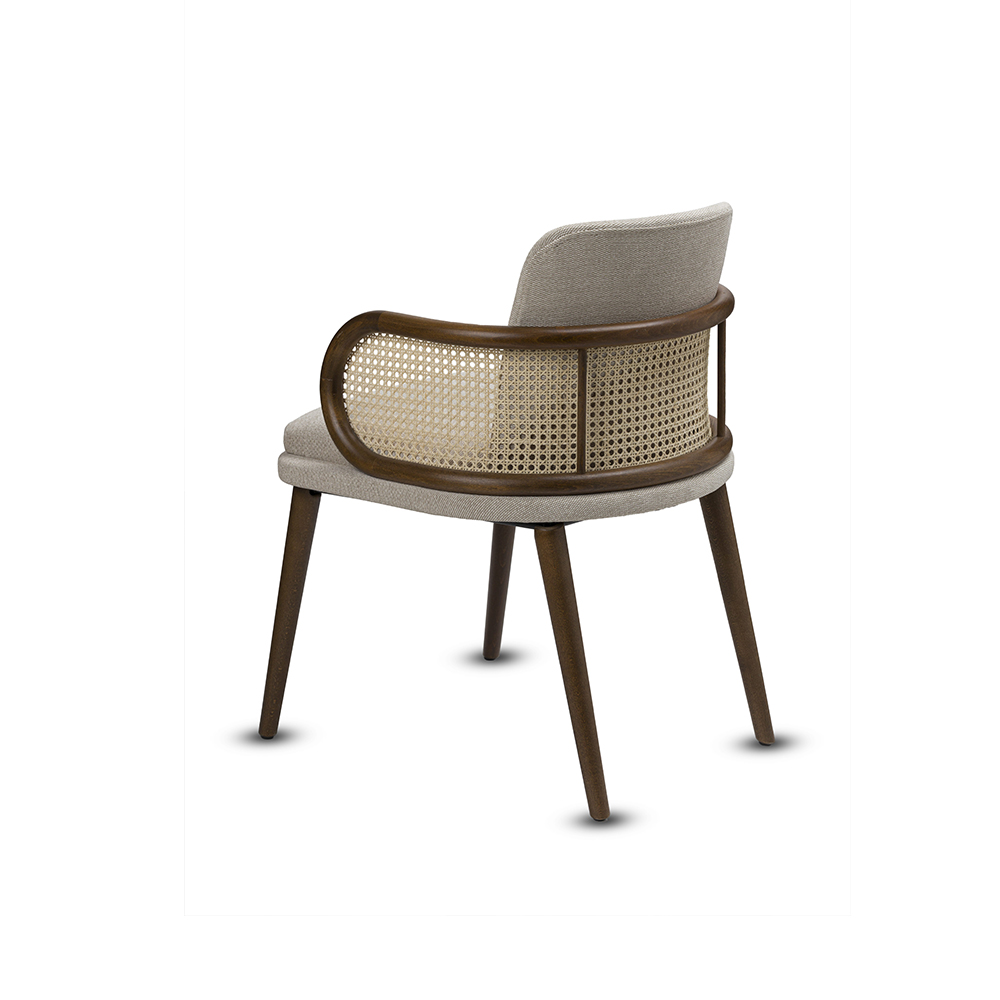 Kavisli ahşap gövdesiyle birleştirilen hazeran sırt detayı, mekâna sıcaklık ve doğallık katar.