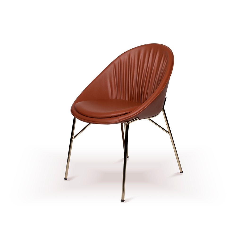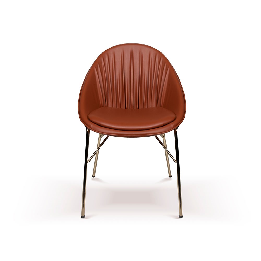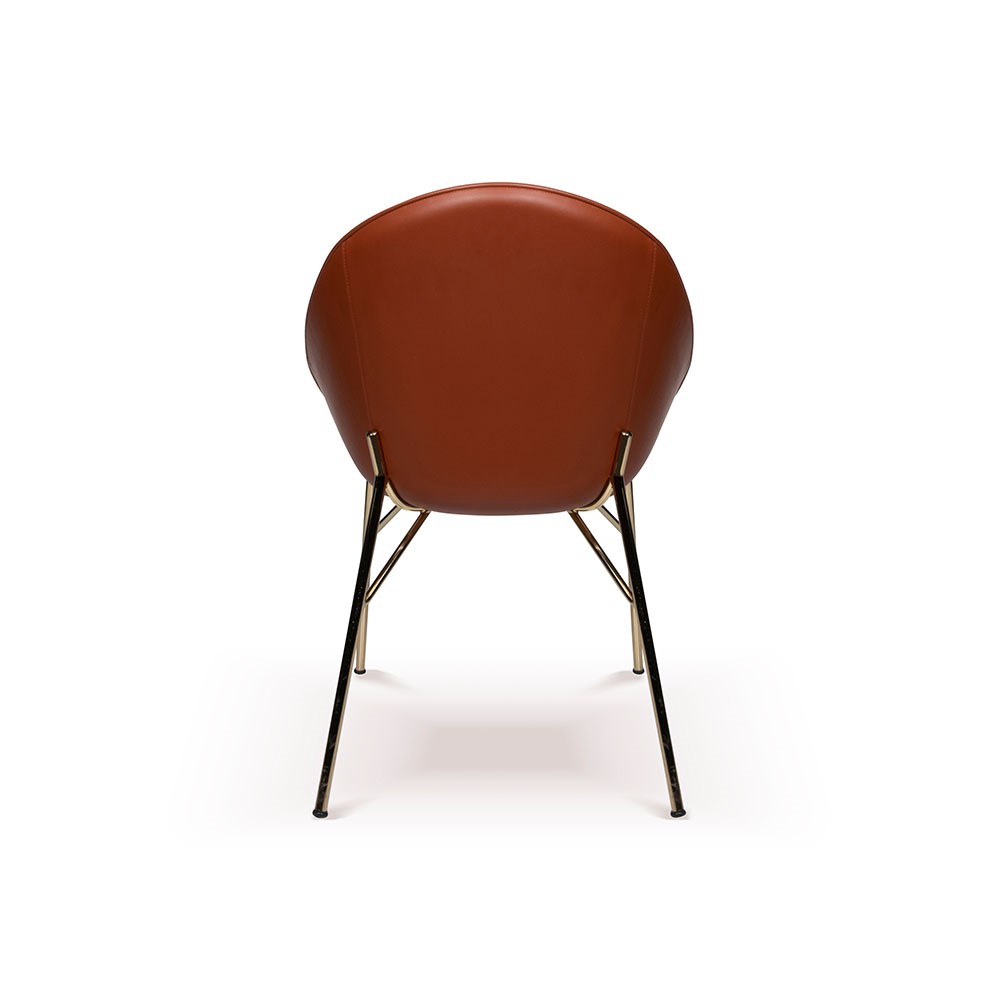 Tura İç Mekan Sandalyesi, özgün tasarımıyla modern mekanlara karakter kazandıran, şıklığı ve konforu bir arada sunan bir modeldir. Kiremit tonlu döşemesi, metalik bronz ayak yapısı ve zarif kavisli sırt formu sayesinde hem çağdaş hem de retro tarzda alanlara mükemmel uyum sağlar.