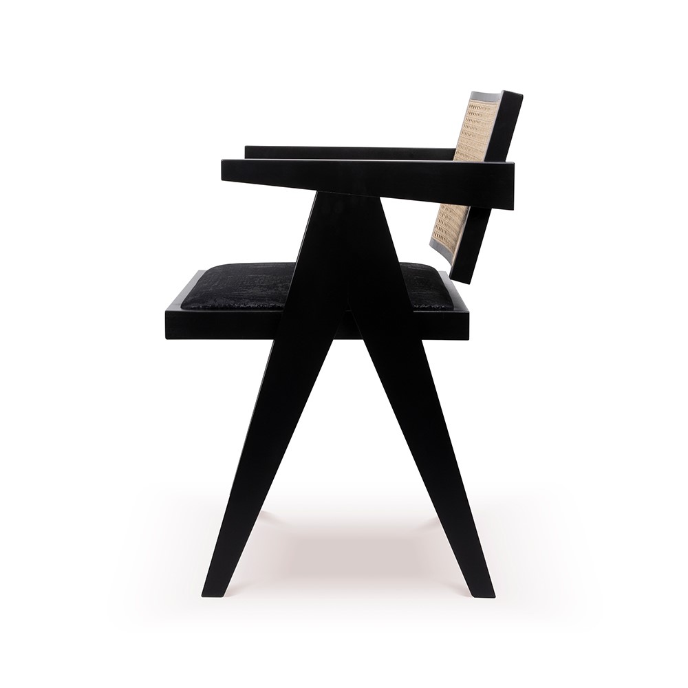 Ahşap iskelet yapısı, el işçiliği sırt kaplaması ve ergonomik oturum formuyla hem estetik hem de uzun ömürlü bir kullanım sunar.