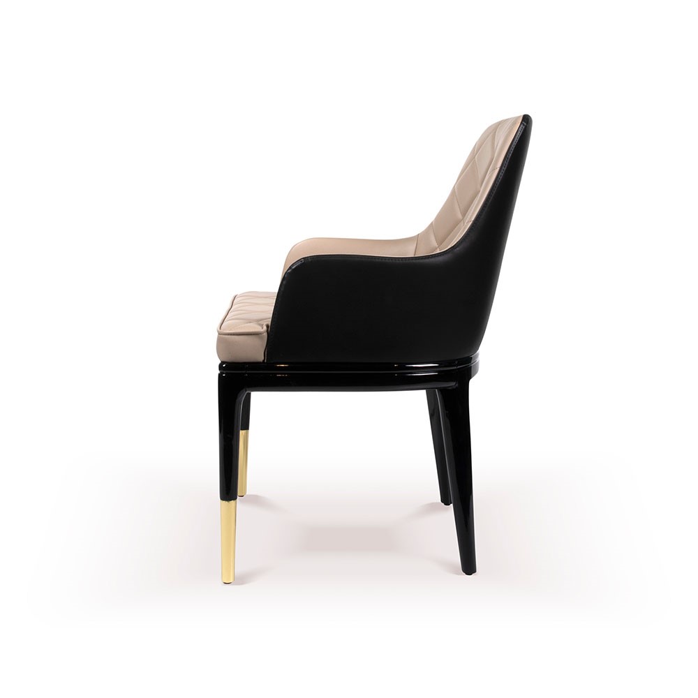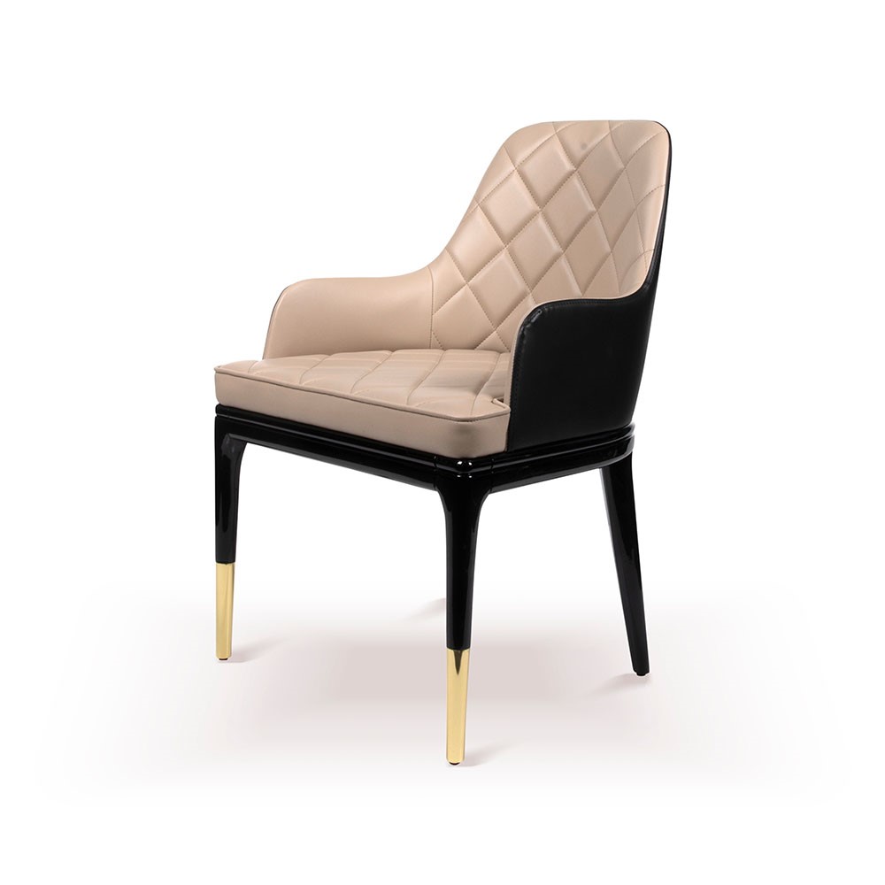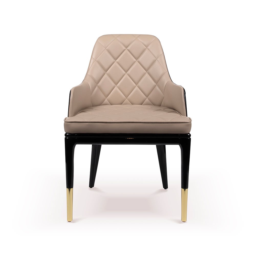 Viena İç Mekan Sandalyesi (Bej Deri), sade tonların lüks detaylarla birleştiği zamansız bir tasarımdır. El işçiliğiyle uygulanmış elmas desenli dikiş formu, kusursuz bir zarafet sunarken; bej tonlu deri döşemesi mekâna sıcaklık ve huzur katar. Parlak siyah lake ayaklar ve gold uç detaylarıyla desteklenen bu model, her açıdan estetik bir bütünlük oluşturur.