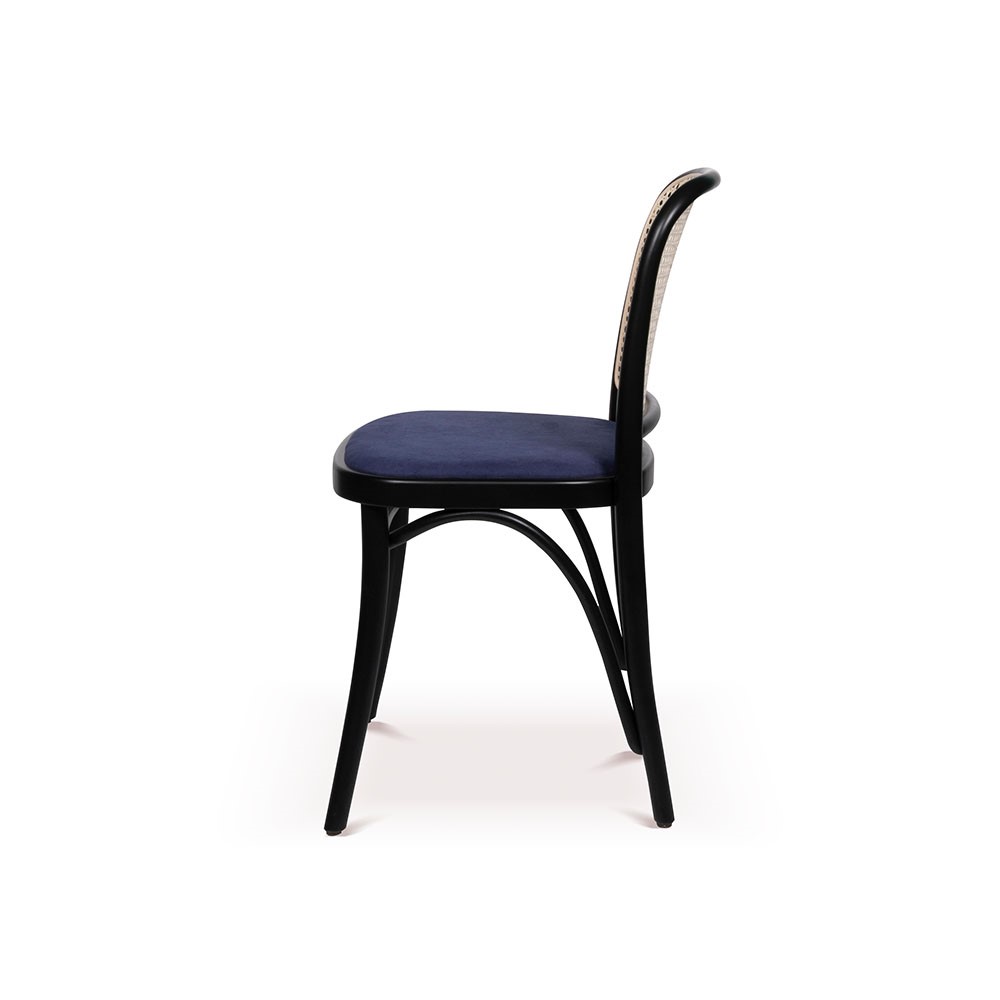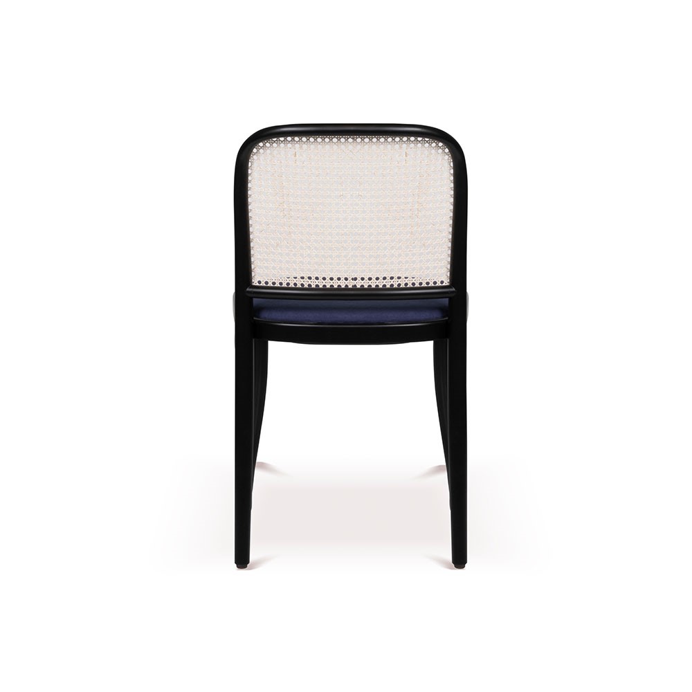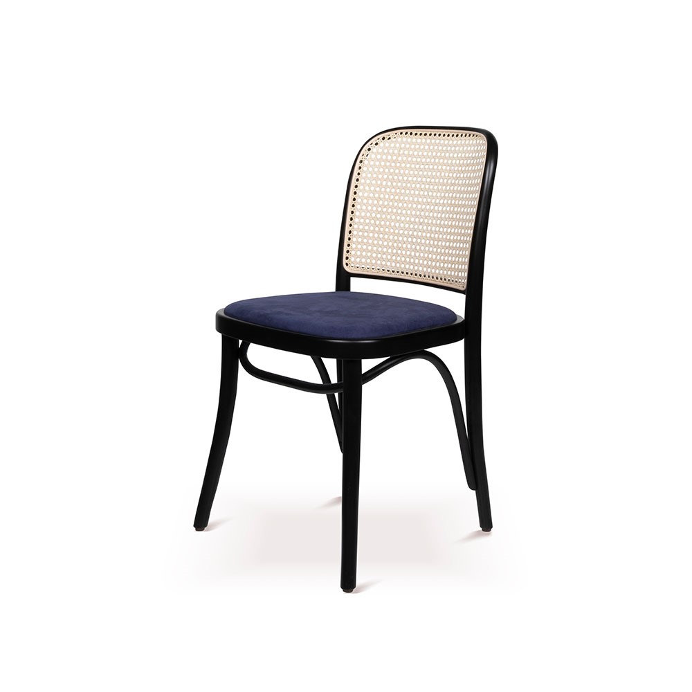 Zara Kolsuz İç Mekan Sandalyesi, el işçiliğiyle üretilen zarif bir modeldir. Arkalık kısmında kullanılan doğal hazeran örgü, oturumda yer alan lacivert nubuk kumaş ile birleşerek mekâna hem sıcak hem de sofistike bir karakter kazandırır. Siyah cila uygulanmış gürgen ahşap iskelet, tasarıma modern bir kontrast kazandırırken dayanıklılığı da garanti eder.