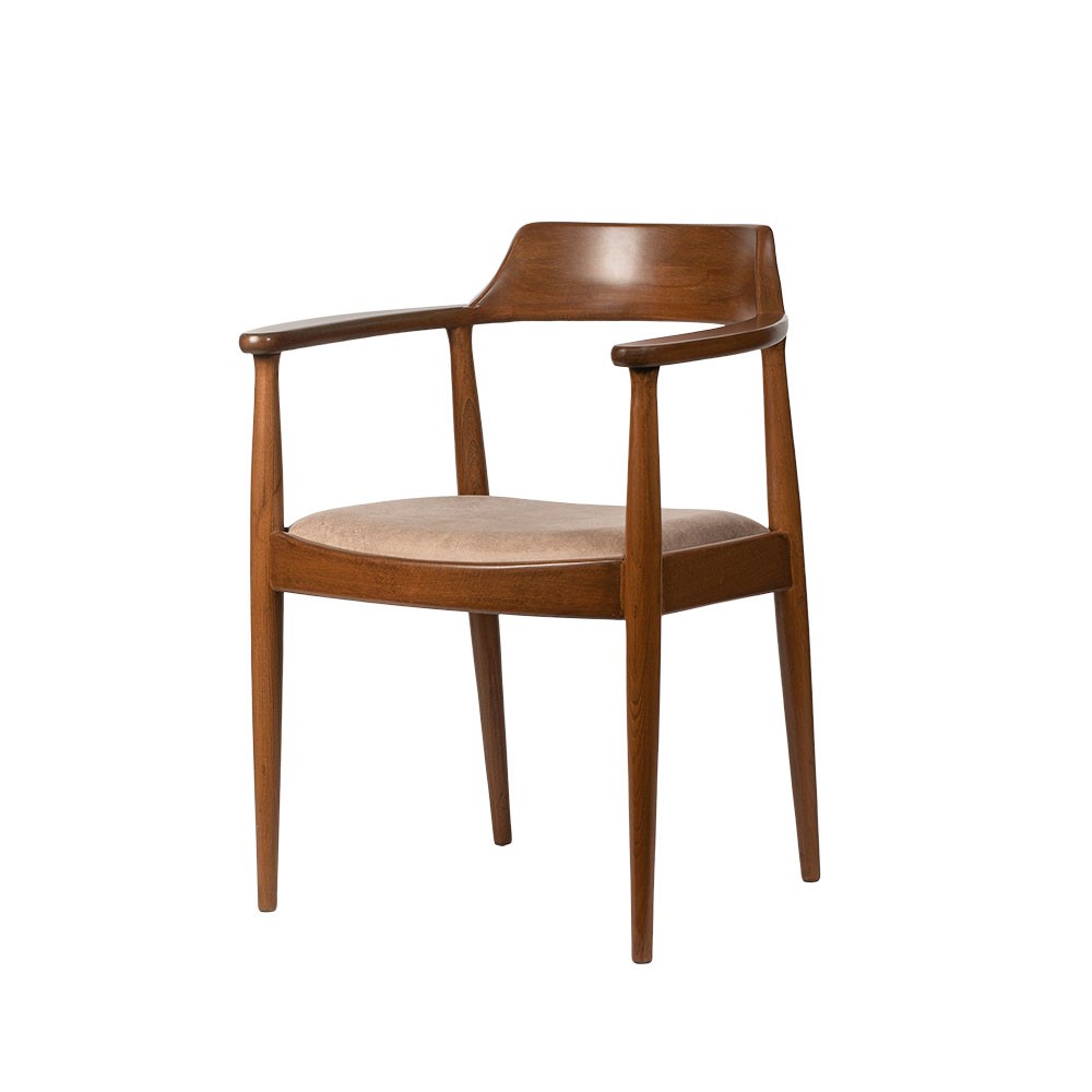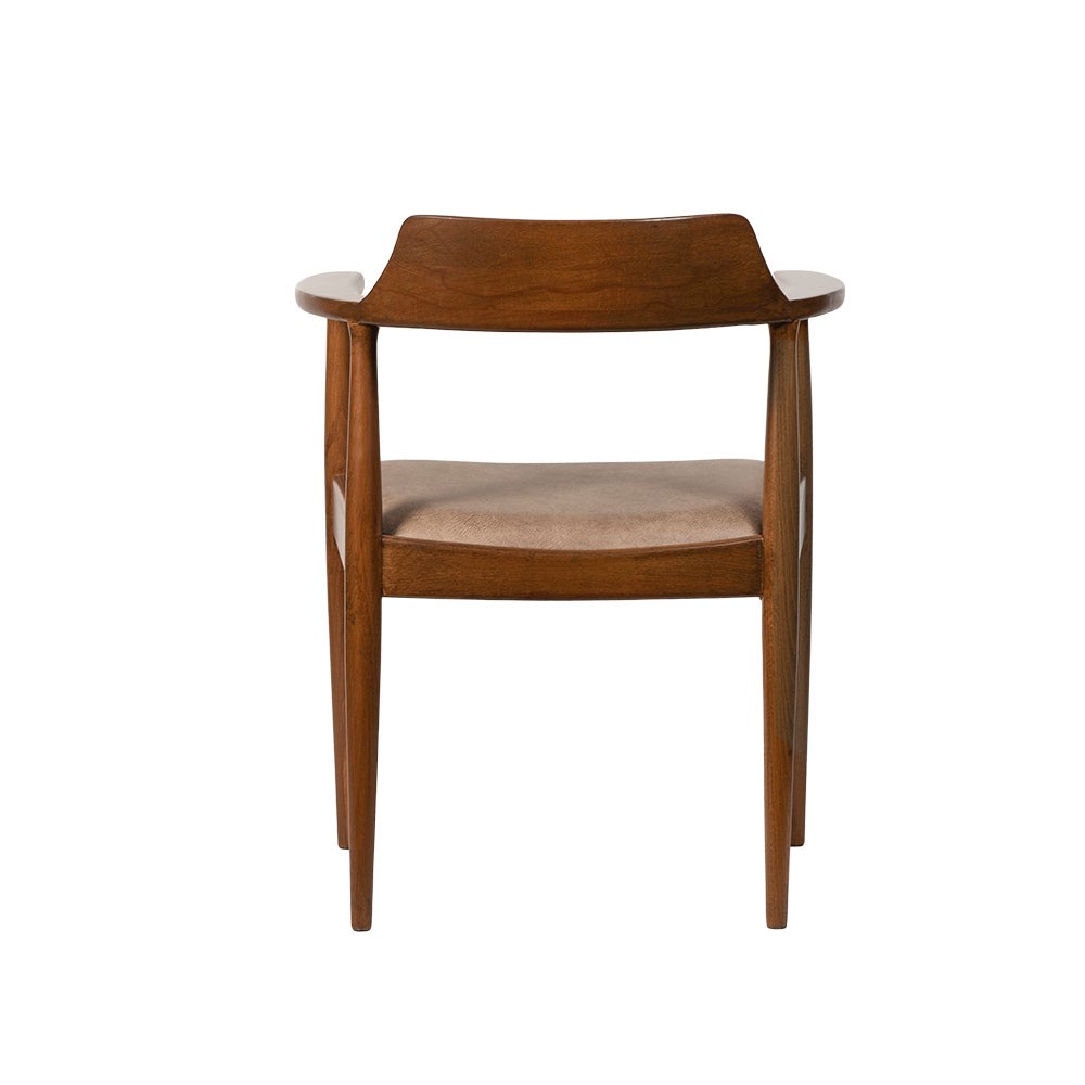 İnce işçilikle şekillendirilen kavisli sırt ve kol yapısı, oturum konforunu artırırken, mekâna sıcak ve davetkâr bir atmosfer kazandırır. Oturum kısmında kullanılan yüksek yoğunluklu sünger dolgulu nubuk kumaş, hem ergonomiyi hem de estetik hissi mükemmel şekilde destekler.